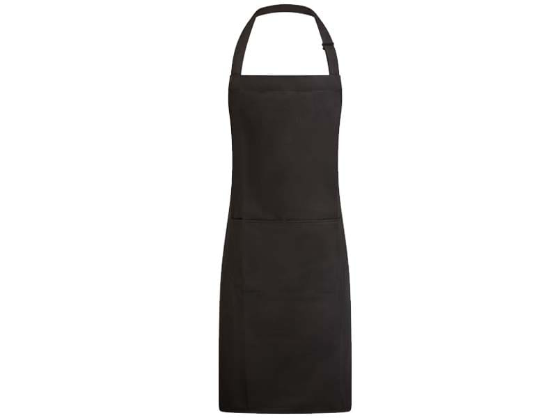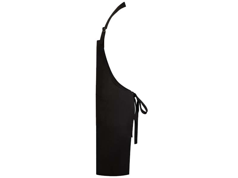 - Duurzaam 225-grams halterschort, vervaardigd uit 35% voorgekrompen katoen en 65% gerecycled polyester.