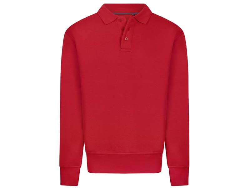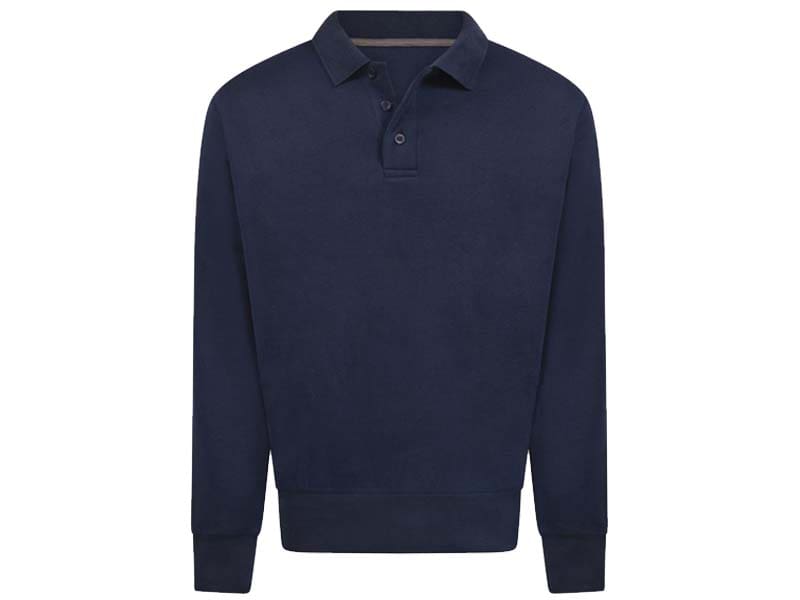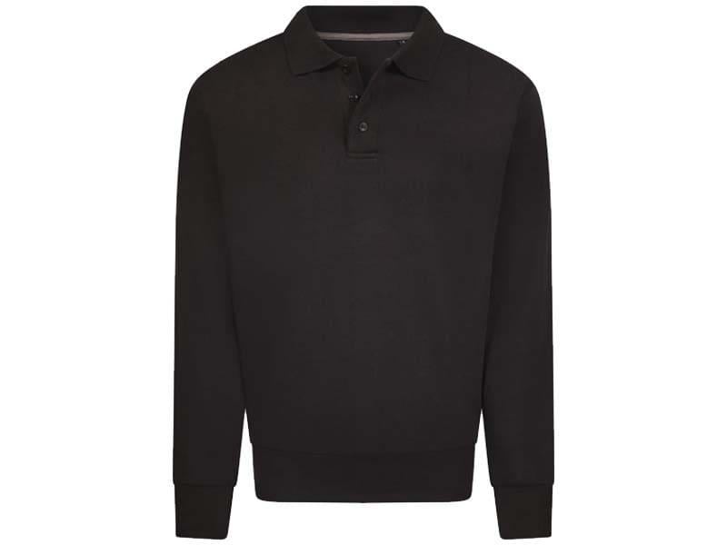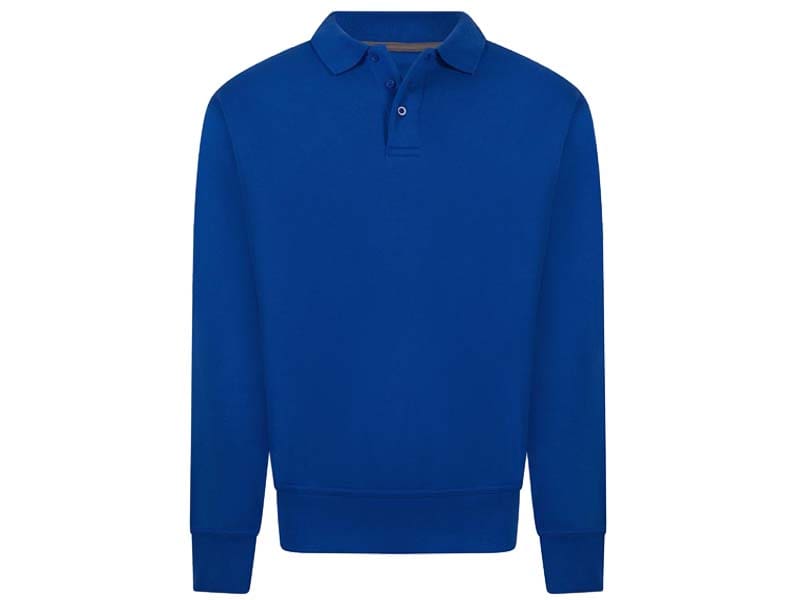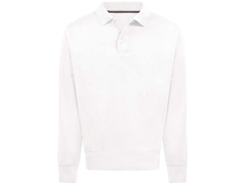 - Duurzame 280-grams polosweater, vervaardigd uit 70% voorgekrompen katoen en 30% gerecycled polyester.