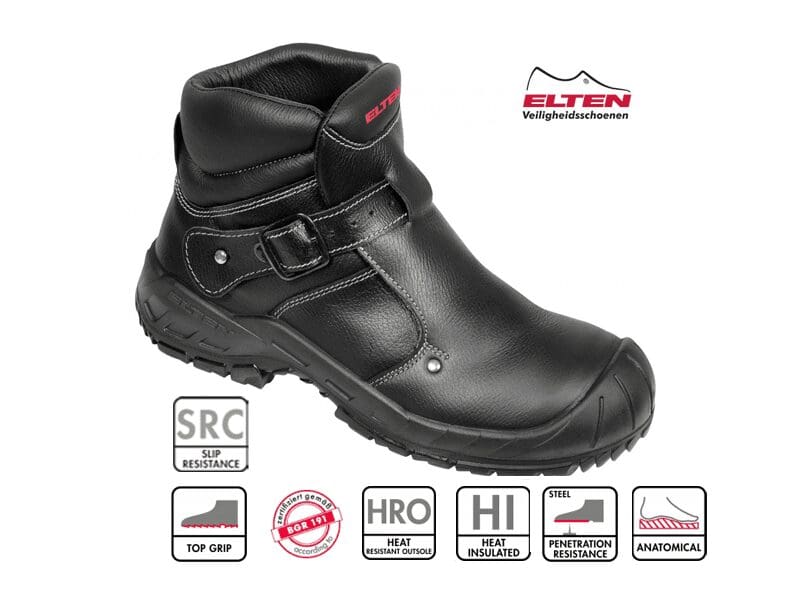 De veiligheidsschoen CARL S3 HI is een halfhoge veiligheidsschoen (vorm B) uit de ELTEN SPECIALS serie. Conform de prestatie-eisen van veiligheidsklasse S3 en is in de maten 39 – 48 leverbaar. CARL S3 HI is HI (HEAT INSULATED) gecertificeerd en beschermt de voet tegen koude verlies. CARL S3 HI is HRO (HEAT RESISTANT OUTSOLE) gecertificeerd. De gepolsterde kraag in de schoen zorgt voor een goede stabiliteit en steun. Bovendien is CARL S3 HI gecertificeerd conform de duitse norm BGR 191. De naden zijn van hittebestendig garen en bieden optimale vuurbestendigheid en hittebescherming en zijn bestand tegen chemicaliën. De neus van de schoen wordt met een PU-kruipneus tegen voortijdige slijtage beschermd. De gespsluiting zorgt voor een comfortabele instap. De snelsluiting biedt een comfortabele instap, maar maakt ook het snelle uittrekken in gevaarlijke situaties mogelijk. De gepolsterde en hittebestendige wreefbescherming voorkomt het indringen van vonken en zorgt voor een optimale bescherming van de voeten. Het bovenmateriaal is gemaakt van robuust, ademend rundleder dat bestand is tegen slijtage. De in onze modellen toegepaste binnenvoering van leder is ademend en scheurvast. Ergonomisch gevormde stalen neuzen beschermen bij CARL S3 HI tegen de gevolgen van externe krachten. De volledige, uitwisselbare inlegzool Basic grey is antistatisch, slijtvast en antibacterieel. De antistatische softvlies-binnenzool zorgt samen met de hele inlegzool voor een aangenaam voetklimaat. De bescherming tegen penetratie in CARL S3 HI bestaat uit een stalen tussenzool van corrosiebestendig, roestvrij staal. De grof geprofileerde twee densiteiten rubber profielzool heeft een zeer goede antislip eigenschappen, is antistatisch, slijtvast, krasbestending, hittebestendig tot ca. 200°C, kortstondig tot 300°C, koudeflexibel tot ca. -20°C, alsmede bestendig tegen vele chemicaliën.