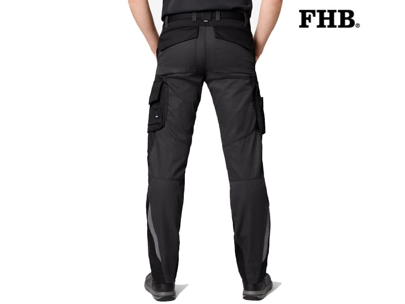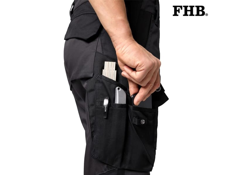 Deze broek is ergonomisch en biedt goede bewegingsvrijheid en heeft een hogere tailleband aan de achterkant voor extra comfort. De kniezakken zijn gemaakt van sterk polyamide (Cordura) met de optie om FHB-kniebescherming van bovenaf in te voegen.