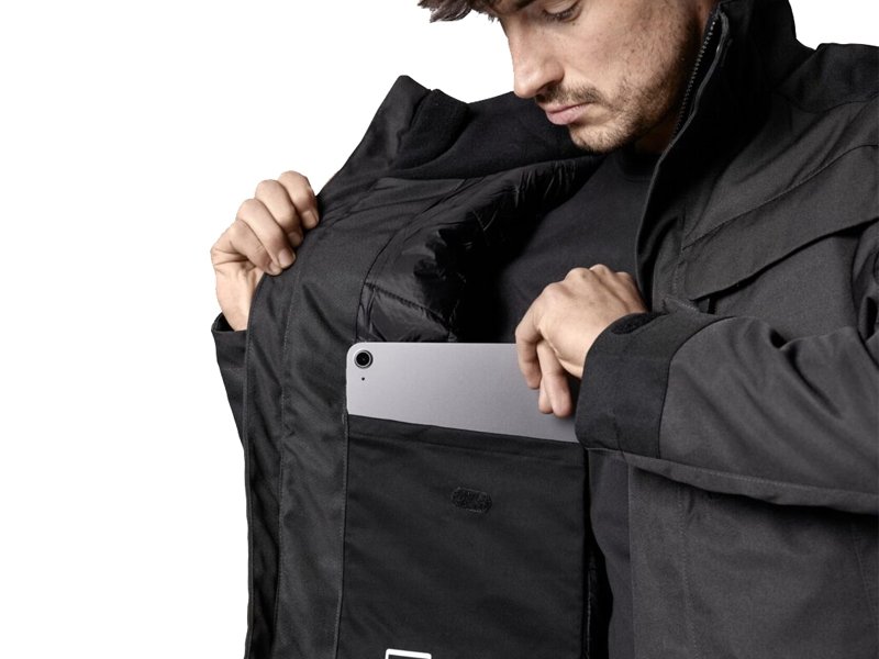 - 4 pennenzakjes op de armen, 4 afsluitbare Voorzakken, 1 binnenzak voor mobiele telefoon en 1 I-pad.