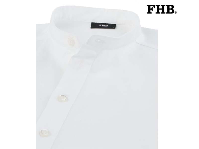 Het werkhemd met opstaande kraag in slip-on-model is het alternatief voor het klassieke overhemd. Het is gemaakt van een lichtere kwaliteit, zonder plooien aan de voorkant, en heeft een smallere pasvorm.