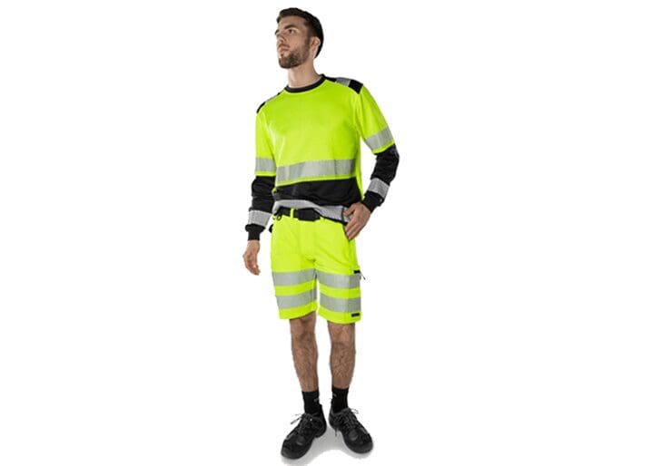 High-vis korte broek gemaakt van duurzame 4-way stretch materialen. Stretchpanelen in de taille voor uitstekend comfort. Met EPD (Environmental Product Declaration).