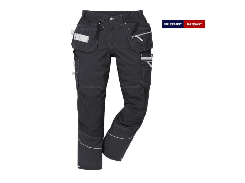 - Met CORDURA® verstevigde kniezakken met opening aan de binnenkant voor in hoogte verstelbare kniebeschermers