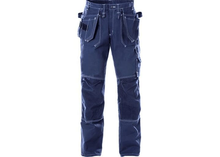 FAS® Fristads beste keperkatoen / 2 met CORDURA® verstevigde loshangende zakken, 1 met 3 kleine zakken en gereedschapslussen, 1 met gereedschapszak en gereedschapslussen / De zakken zijn weg te steken / D-ring / 2 ruime voor- en achterzakken / 2 hamerlussen, waarvan 1 verstelbaar / Met CORDURA® verstevigde duimstokzak met pennenzak en knoop en lus voor werkmes / Beenzak met klep, telefoonzakje en extra zak met lus voor ID-pashouder / Met CORDURA® verstevigde kniezakken met opening aan de buitenkant / Kniezakken voor in hoogte verstelbare kniebeschermers / Goedgekeurd volgens EN 14404 samen met kniebeschermers 124292 / OEKO-TEX® gecertificeerd.