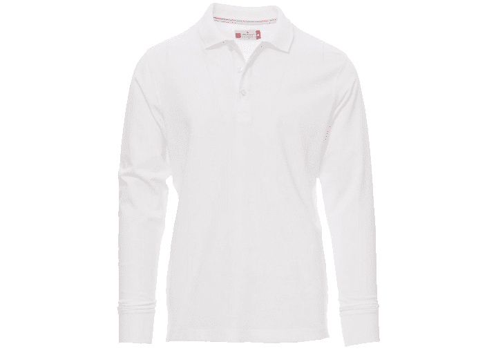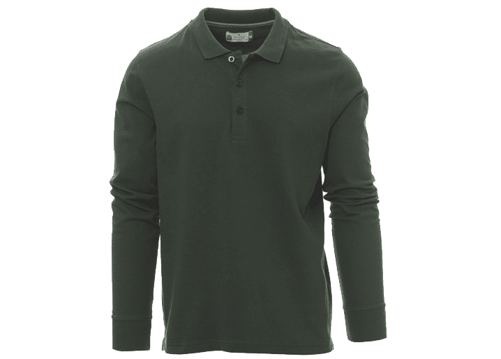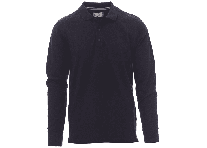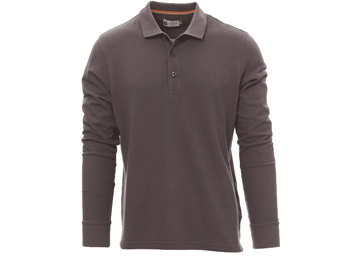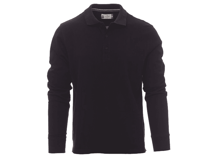 Herenpoloshirt met lange mouwen met 3 bijpassende knopen met parelmoereffect, ribkraag en ribboorden aan de mouwen, zijsplitten, verborgen stiksels bij de kraag met contrasterende band, elastische naden, versterkingsband aan de zijkant, band aan de binnenkant van de nek.