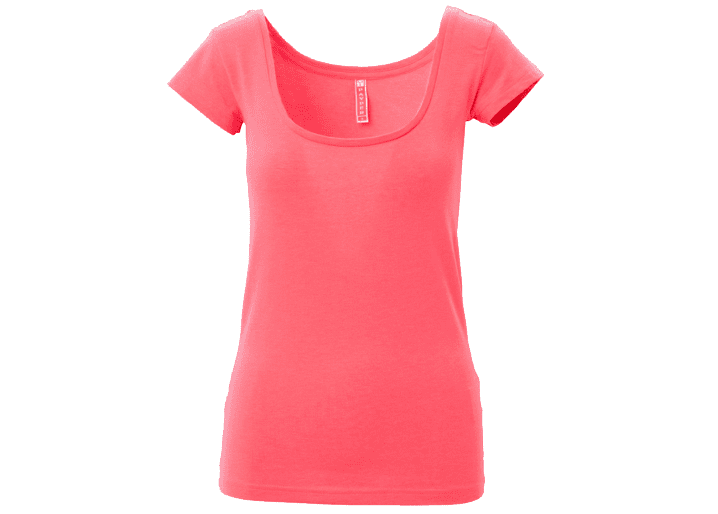 Nauwsluitend dames-T-shirt met korte mouwen en vierkante hals, met halsrand van 1 cm, zijnaden.