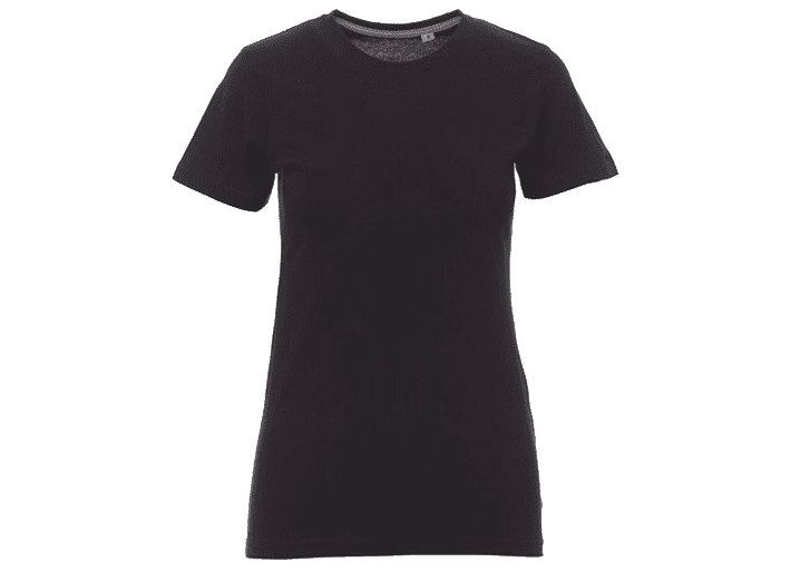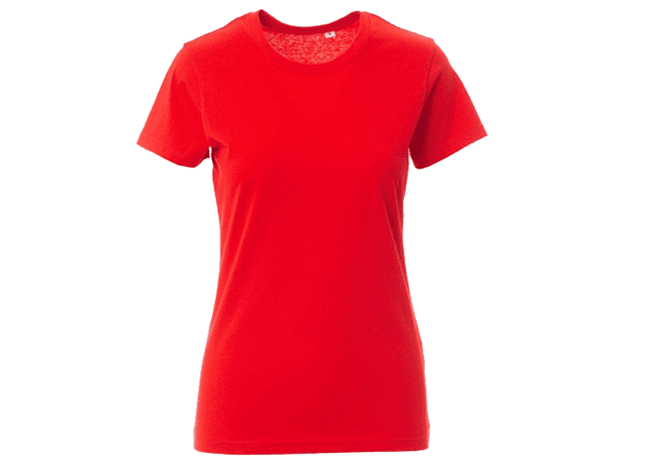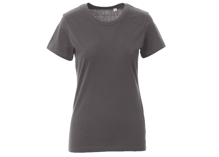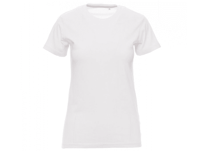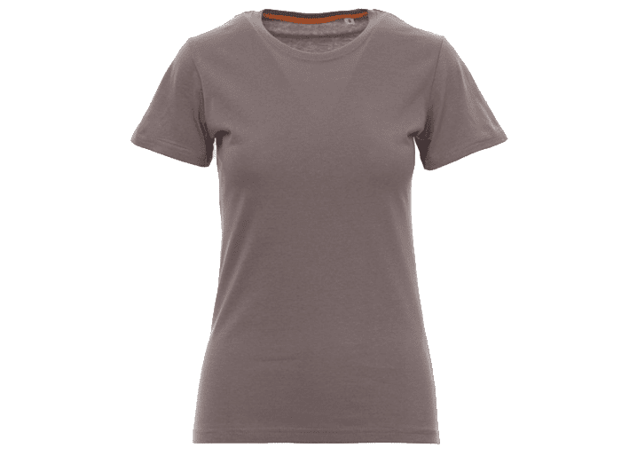 Nauwsluitend dames-T-shirt met korte mouwen en ronde hals, met afgezette geribde halsrand van 1,5 cm van een mix met spandex met stiksel aan de buitenkant, contrasterende versterkingsband van schouder naar schouder, elastische naden, zijnaden. Geen label