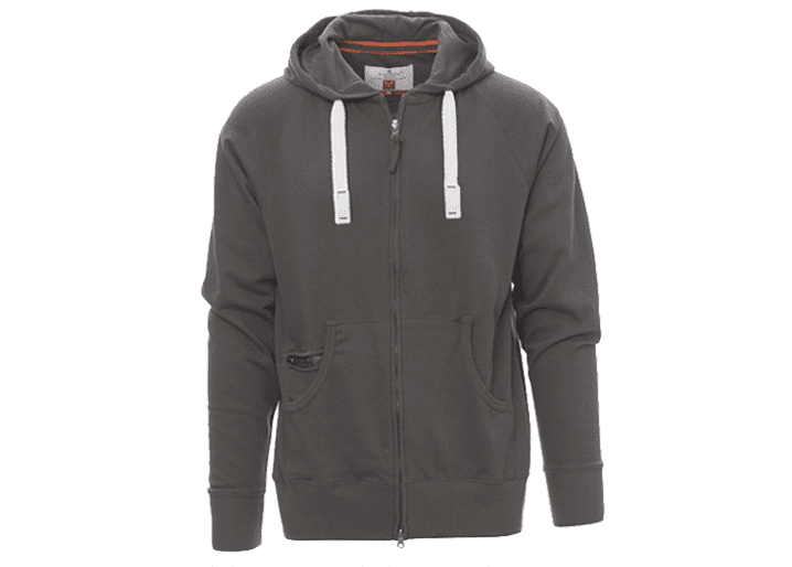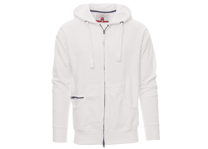Heren hoodie jack met doorlopende verdekte SBS-rits met dubbele metalen runner, capuchon met dubbel gestikte naden en wit trekkoord met contrasterend stiksel en metalen ringen, raglanmouwen, kangoeroezakken, kleine zak met rits, ribboorden met stretch aan de zoom en mouwen, versterkte naden.