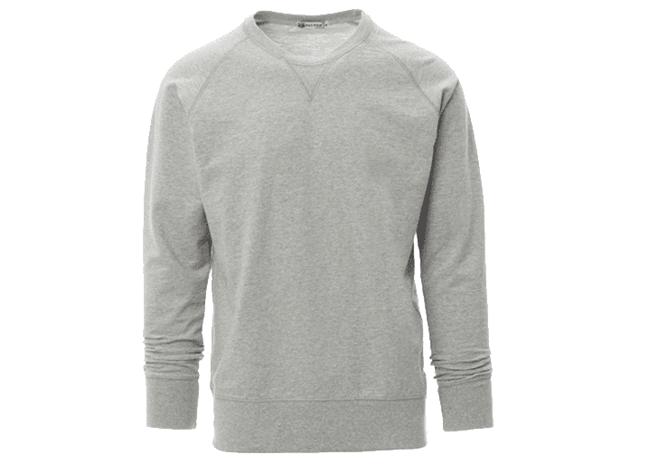 Herensweatshirt, ronde hals, raglanmouwen, V-stiksel bij de stretch ribboord aan hals, mouwen en zoom, verstevigde naden.