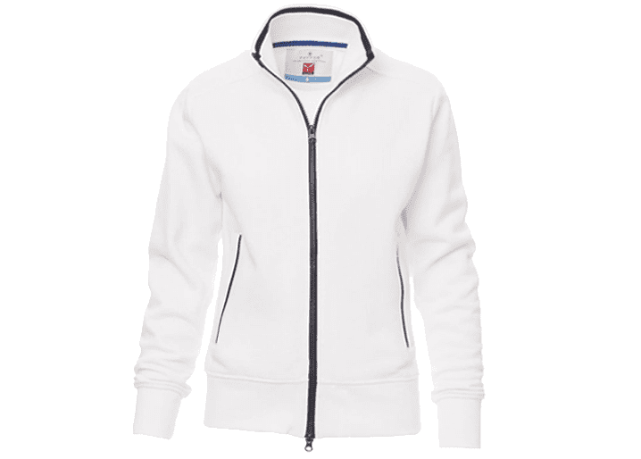 Nauwsluitend damessweatshirt met doorlopende kunststof SBS-rits in contrasterende kleur met dubbele metalen runner. Ribkraag met contrasterende rand, zakken opzij met contrasterende rand, nauwsluitende mouwen, twee buitenzakken met contrasterende rits, ribboorden met stretch aan zoom en mouwen, versterkte naden.