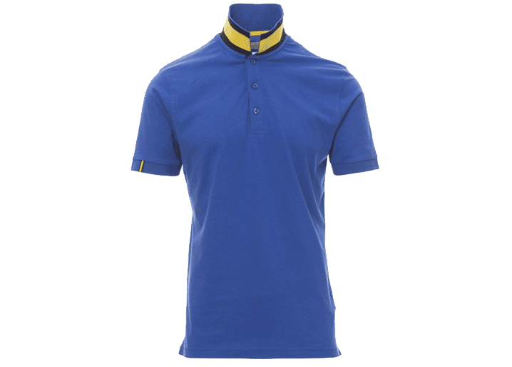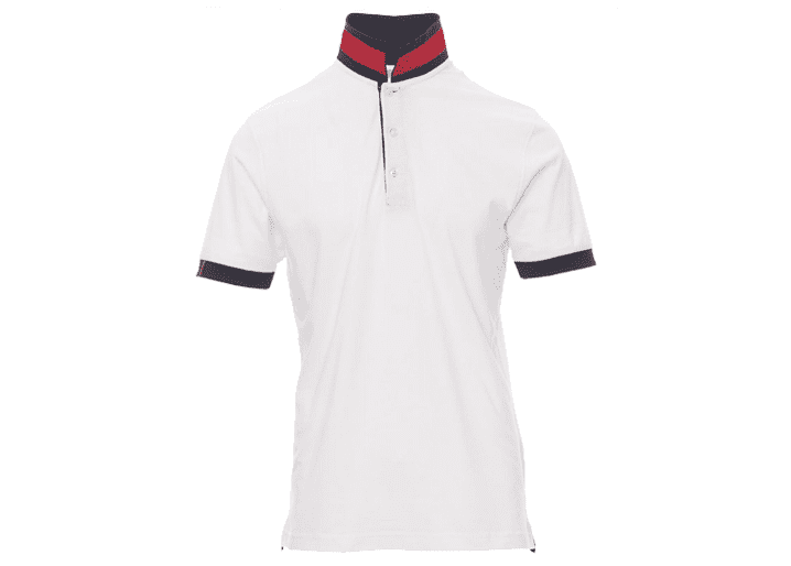 Herenpoloshirt met korte mouwen met 3 bijpassende knopen met parelmoereffect, bijpassende kraag met contrasterende onderkant, contrasterende achterkant van overslag en zijsplitten, rechte mouwrand in kleur (dezelfde kleur als de kraag), geribde mouwrand, verborgen stiksels bij de kraag met contrasterende band, versterkingsband aan de zijkant, band aan de binnenzijde van de nek.