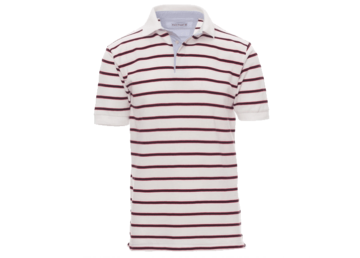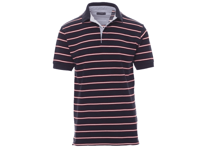 Gestreept poloshirt met korte mouwen met 3 witte knopen, overslag, binnenkant van de kraag en zijsplitten in Oxfordblauw, ribkraag en geribde mouwrand.