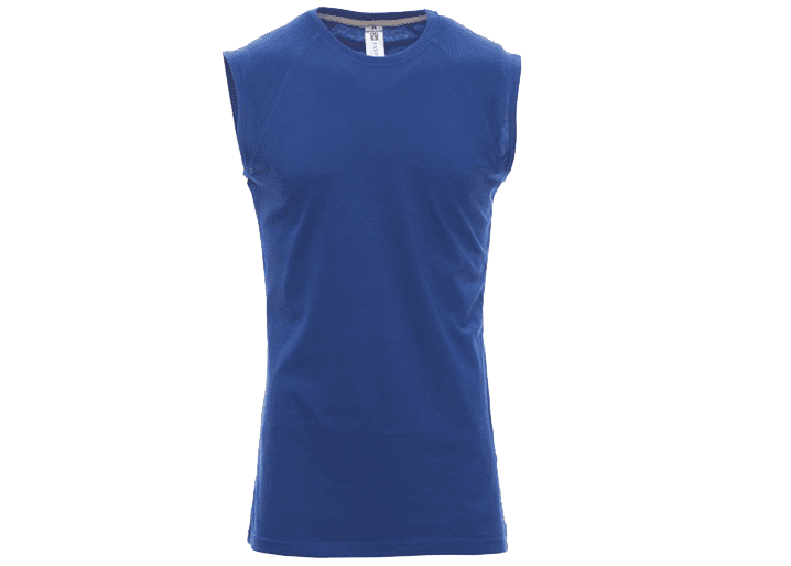Herentop met verlaagde ronde hals, raglanmouwen, met afgezette geribde halsrand van 1,5 cm van een mix met spandex met stiksel aan de buitenkant, contrasterende versterkingsband van schouder naar schouder zichtbaar aan de binnenkant van de nek, elastische naden.