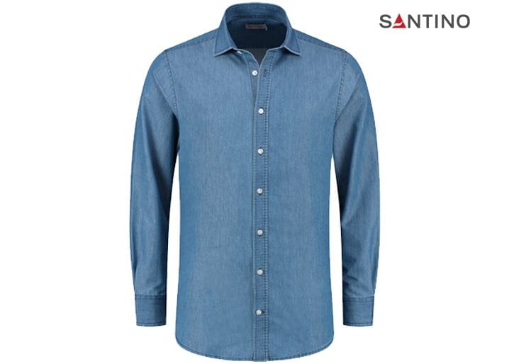Denim shirt, 69% katoen, 31% polyester, 156 gr/m2, fijne keperbinding, modern fit shirt met lange mouwen, modern cut-away kraag, verstelbare manchetten.