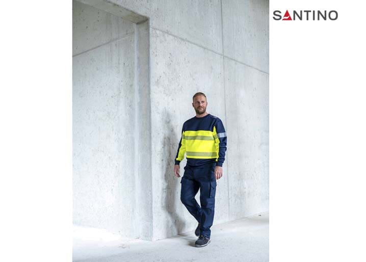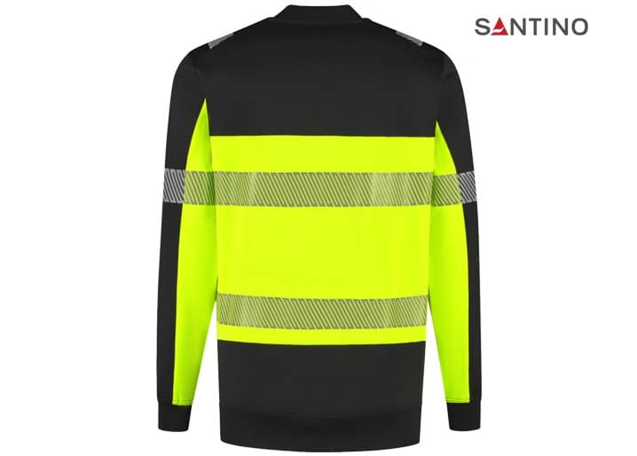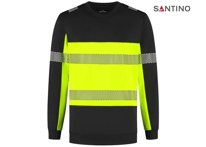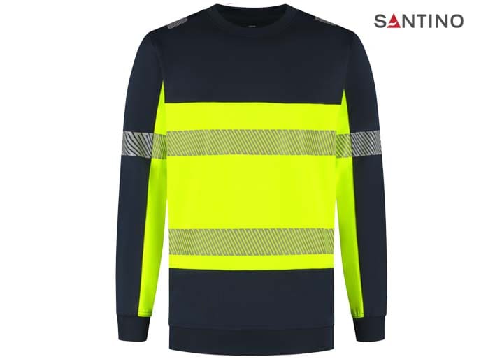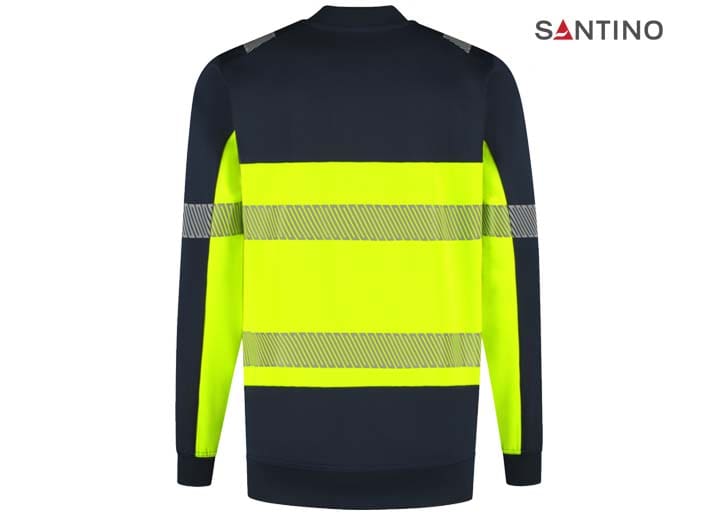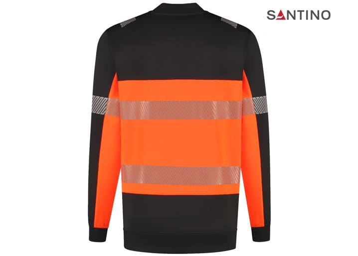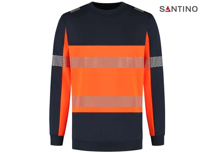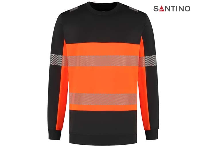 Fluorescerende veiligheids-sweater conform de Europese norm EN 17353:2020 – AB3, double face materiaal: 75% gerecycled polyester (buitenzijde) / 25% katoen (binnenzijde), GRS gecertificeerd, 320 gr/m2, unisex, French terry met geruwde binnenzijde, regular fit, ronde hals, mouw en tailleband in 1×1 rib met elastaan, reflecterende gesegmenteerde LOXY tape op de schouder, mouw en rondom het lichaam.