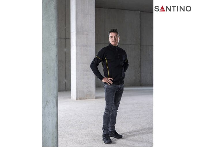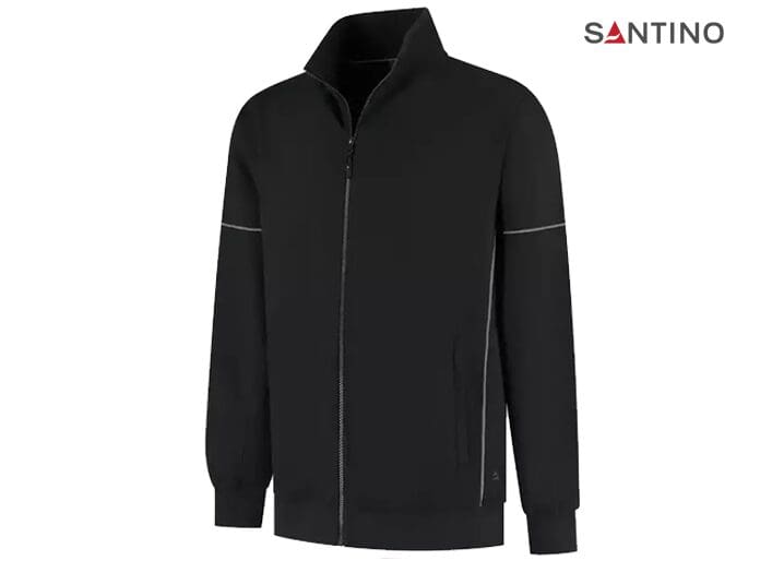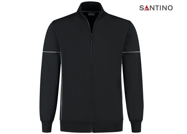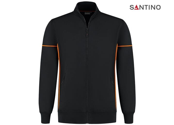 Sweatvest Colt. Gemaakt van 50% gerecycled polyester / 48% organisch katoen / 2% elastaan, GRS en OCS gecertificeerd, 320 gr/m², French terry met geruwde binnenzijde, unisex, regular fit, contrast piping, opstaande kraag, voorsluiting YKK rits, 2 steekzakken met YKK rits, mouw en tailleband met 1×1 ribboord. 3D Santino logo transfer op onderzijde.