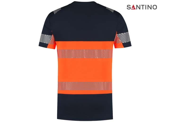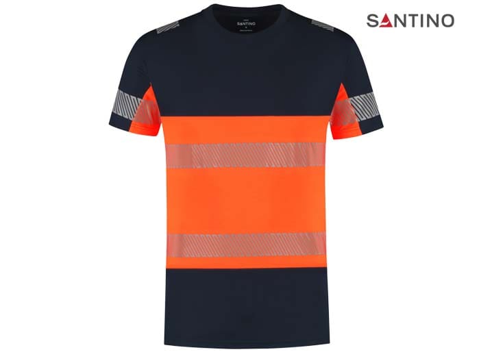 Fluorescerend veiligheids-T-shirt conform de Europese norm EN 17353:2020 – AB3, double face materiaal: buitenzijde 45% gerecycled polyester (buitenzijde) / 55% katoen (binnenzijde), RCS gecertificeerd, 185 gr/m2, unisex, piqué, modern fit, ronde hals in 1×1 rib met elastaan, reflecterende gesegmenteerde LOXY tape op de schouder, mouw en rondom het lichaam. Splitjes in de zijnaad.
