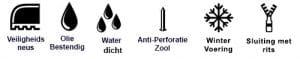 - Veiligheidsstandaard: EN 20345 S3 WR HRO SRC