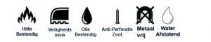 - Buitenool: Olie- en hittebestendige antislip zool van rubber Tussenzool: PU Inlegzool: Vochtafvoerend, antibacteriële PU